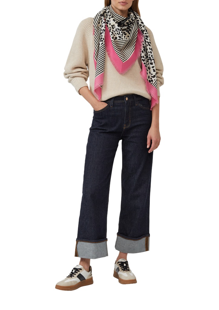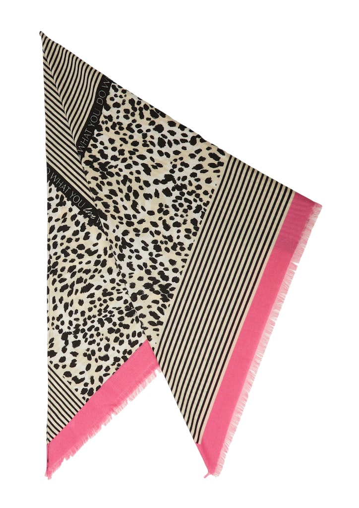 Dieses Dreieckstuch verzaubert mit seinem aufregenden Leo-Print und gestreiften Akzenten. Das stylische Artwork macht es zum Hingucker. Perfekt, um deinem Outfit eine interessante Note zu verleihen.