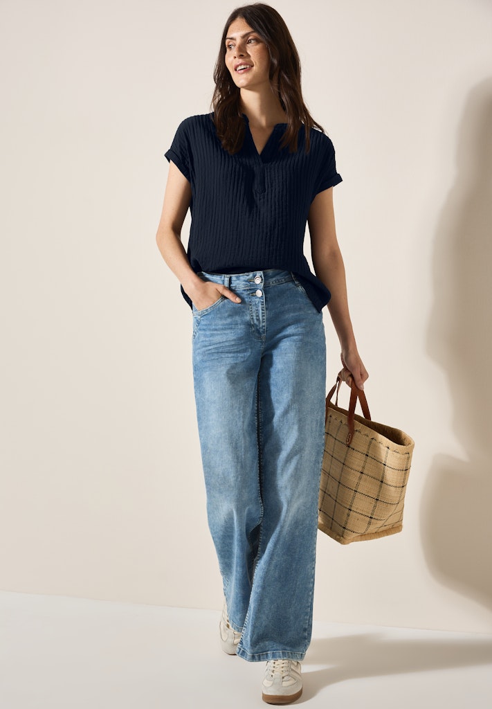 Cecil Pieces zeichnen sich durch ihre Kombinierbarkeit aus. Ob mit Jeans, Rock oder Blazer – die Kleidungsstücke lassen sich flexibel zu verschiedenen Looks für Beruf, Freizeit oder City-Ausflug stylen.