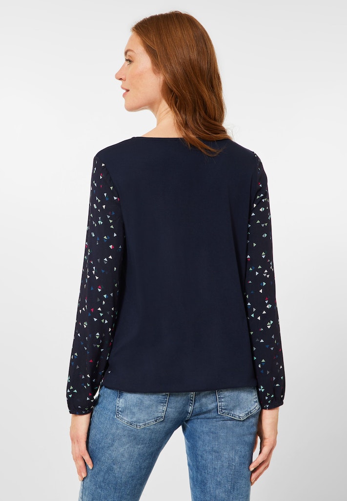 Printbluse im Materialmix night sky blue