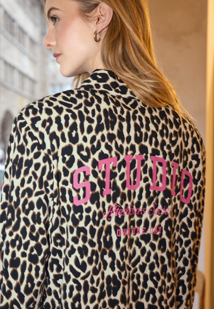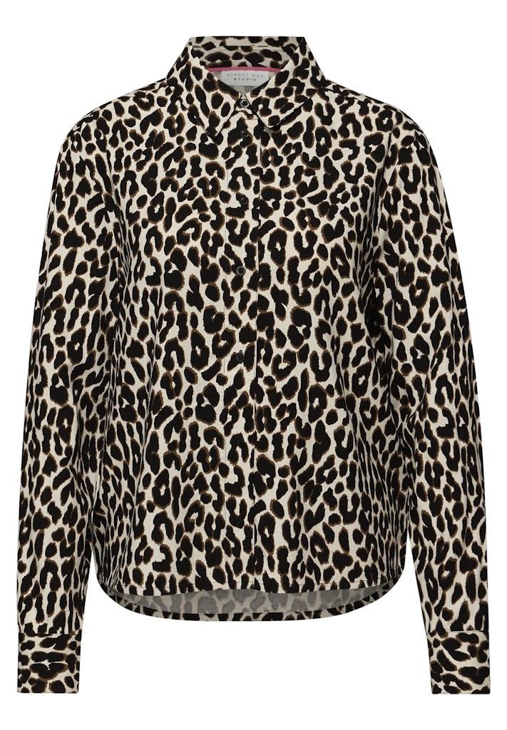 Die Hemdbluse von Street One Studio für Damen ist aus weicher Viskose gefertigt und setzt mit Leo-Muster und modischem Backprint ein ganz besonderes Statement. Die Knopfleiste rundet den Blusen-Look ab und macht die Damenbluse praktisch und vielseitig. Kombiniere sie mit Jeans oder Stoffhose für deinen individuellen Stil. Viskosebluse Casual Hemdkragen Langarm Modern und lässig Material: 100% Viskose