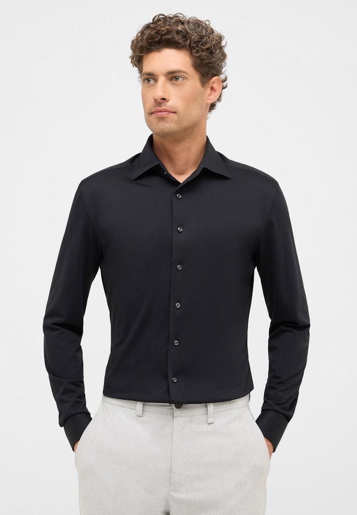 Entdecke das perfekte Hemd für jeden Anlass – das Hemd Single-Jersey Langarm in edlem Navy. Dieses vielseitige Herrenhemd kombiniert modernen Stil mit höchstem Tragekomfort und ist ein Must-have für deine Garderobe. Ob im Büro, beim Ausgehen oder in der Freizeit, dieses Hemd passt sich deinem Lifestyle optimal an.