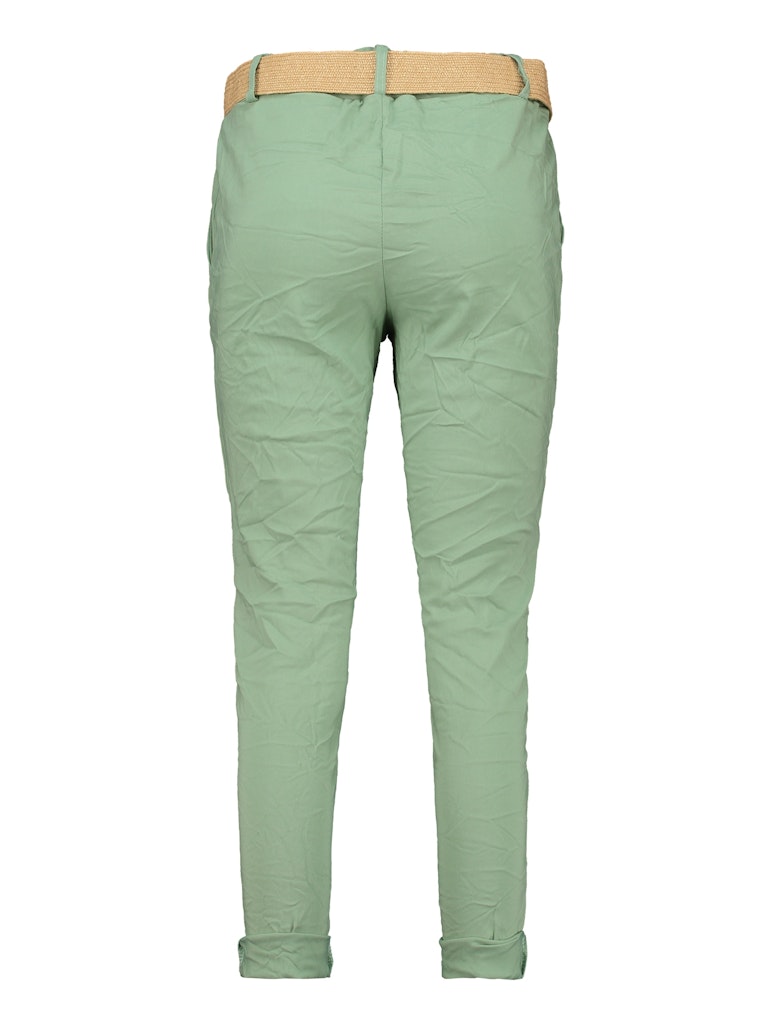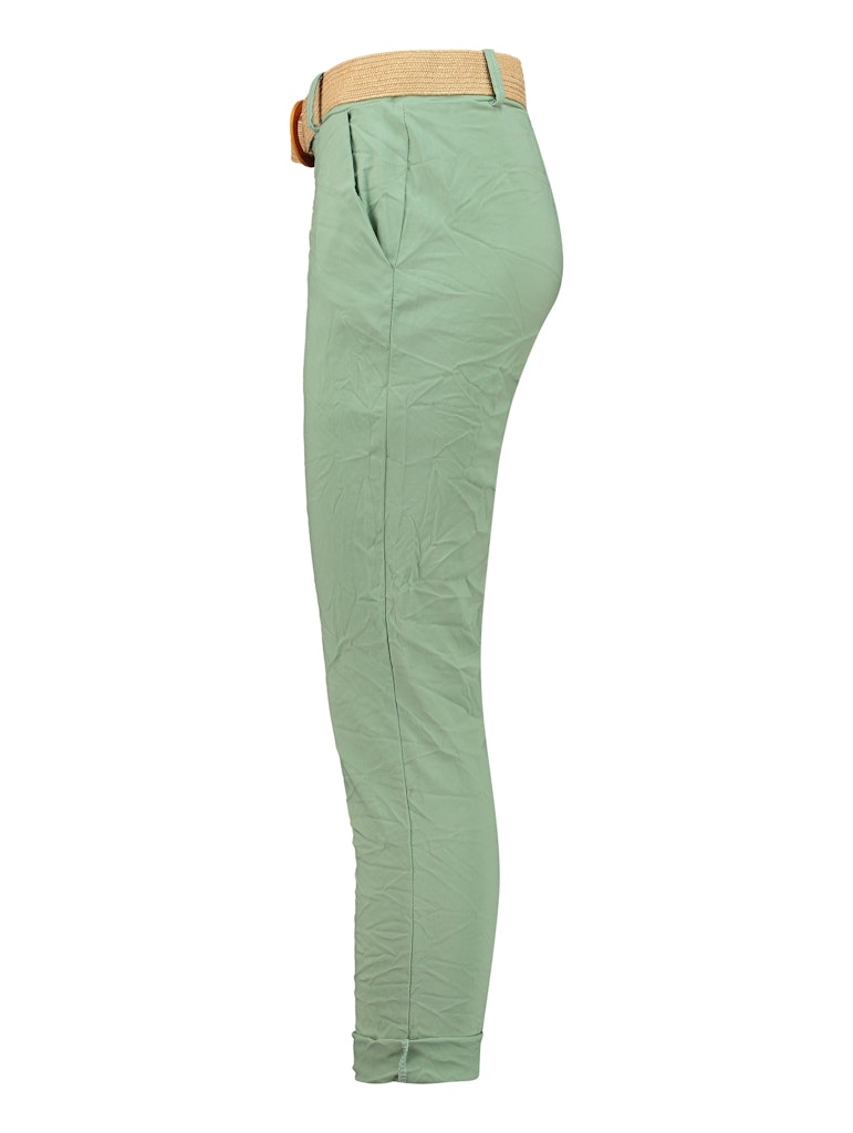 Leichte Hose mit Bastgürtel und Seitentaschen. Gekrempelte Beinsäume.