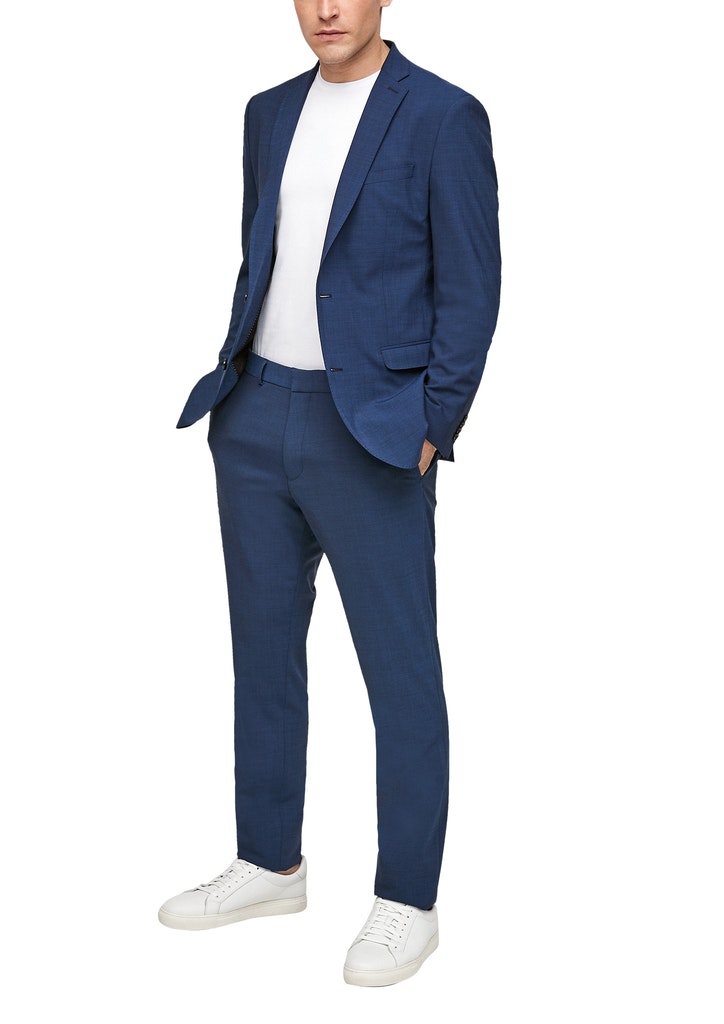Außenmaterial: 52 % Polyester, 43 % Schurwolle, 5 % Elasthan; Futter: 100 % Polyester