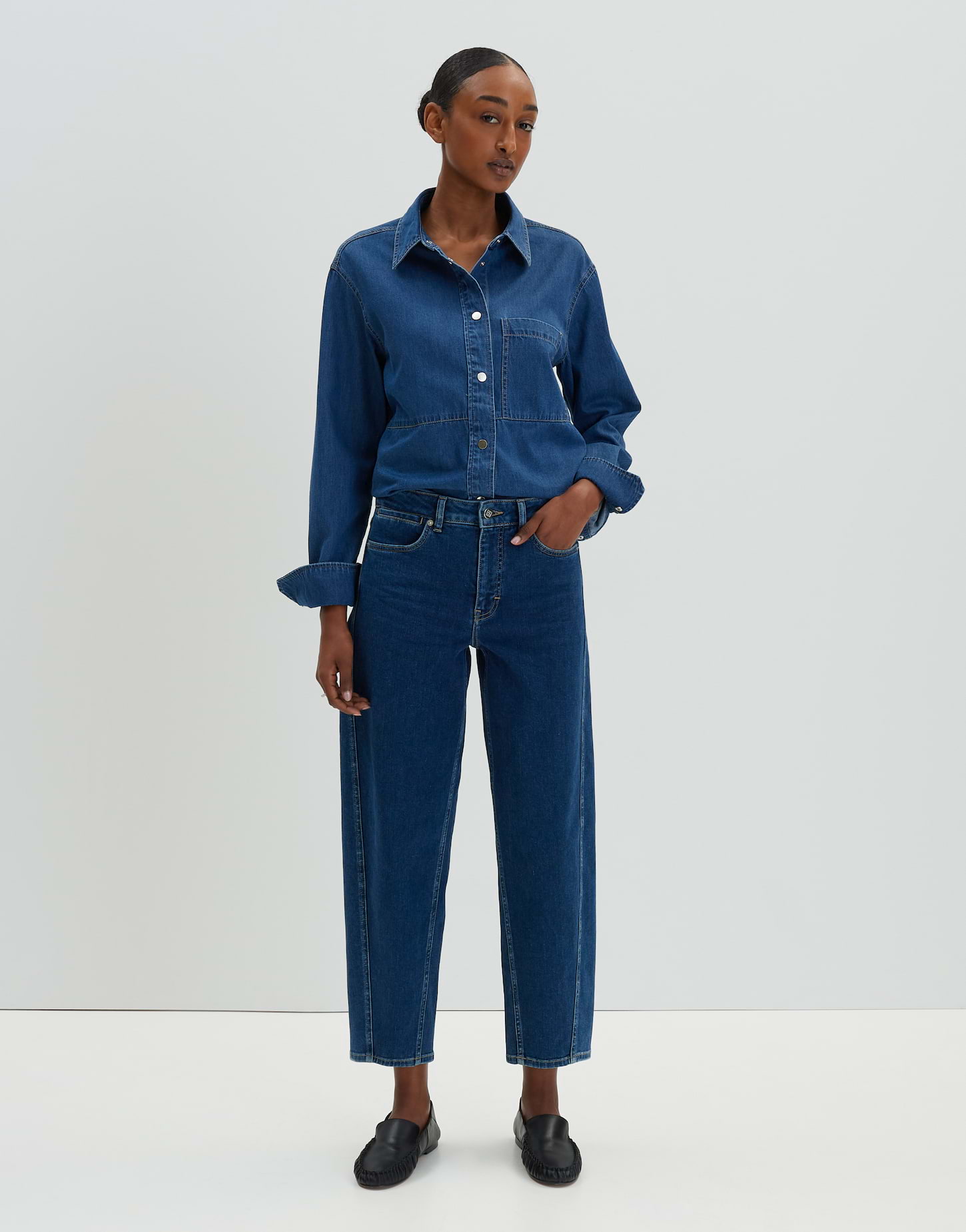 weit am Oberschenkel, ballonförmiger Beinverlauf, Beininnenlänge ca. 70 cm in jeder Größe, Model Größe 178 cm - trägt Größe 36, Denim, Stretchgrad: Comfort, authentische Waschung, 5-Pocket-Design, verdeckter Zip-Fly, nach vorne verlaufende Seitennaht, Gürtelschlaufen