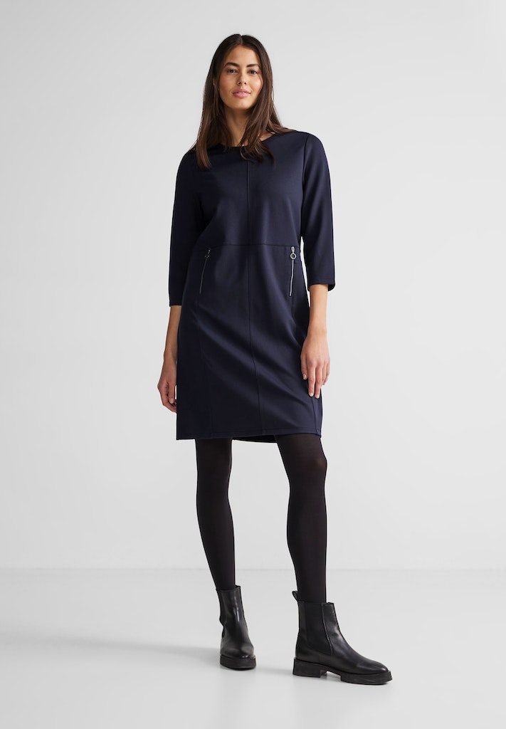 Jetzt bestellen und deinen Look perfektionieren! Erlebe die perfekte Kombination aus Stil und Komfort mit unserem knielangen Jerseykleid in deep blue. Warte nicht länger und sichere dir dieses Must-Have-Piece für deine nächste Veranstaltung oder den alltäglichen Gebrauch.