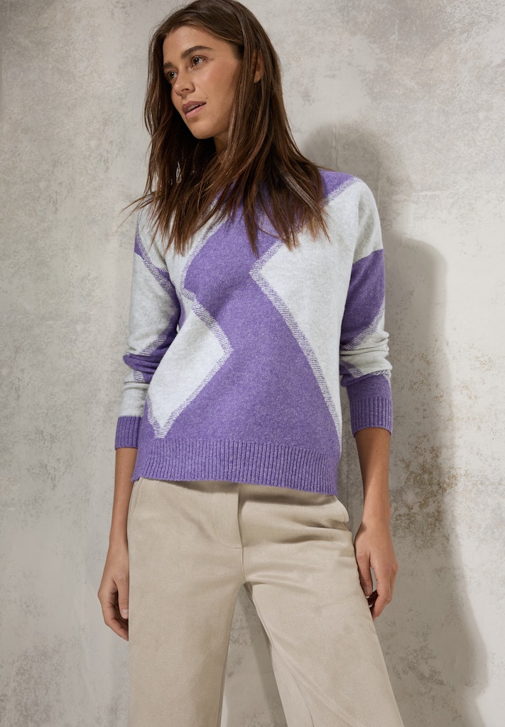 Der gemusterte Pullover von CECIL für Damen ist ein Feinstrickpullover mit grafischem Muster. Der Rundhalsausschnitt und die langen Ärmel mit Bündchen sorgen für zusätzlichen Komfort. Der Baumwollmix mit Stretchanteil macht ihn besonders angenehm zu tragen. Feinstrickpullover Rundhalsausschnitt Langarm mit Bündchen Grafisches Muster Baumwollmix mit Stretchanteil Material: 35% Baumwolle, 32% Polyacryl, 29% Polyester, 4% Elasthan