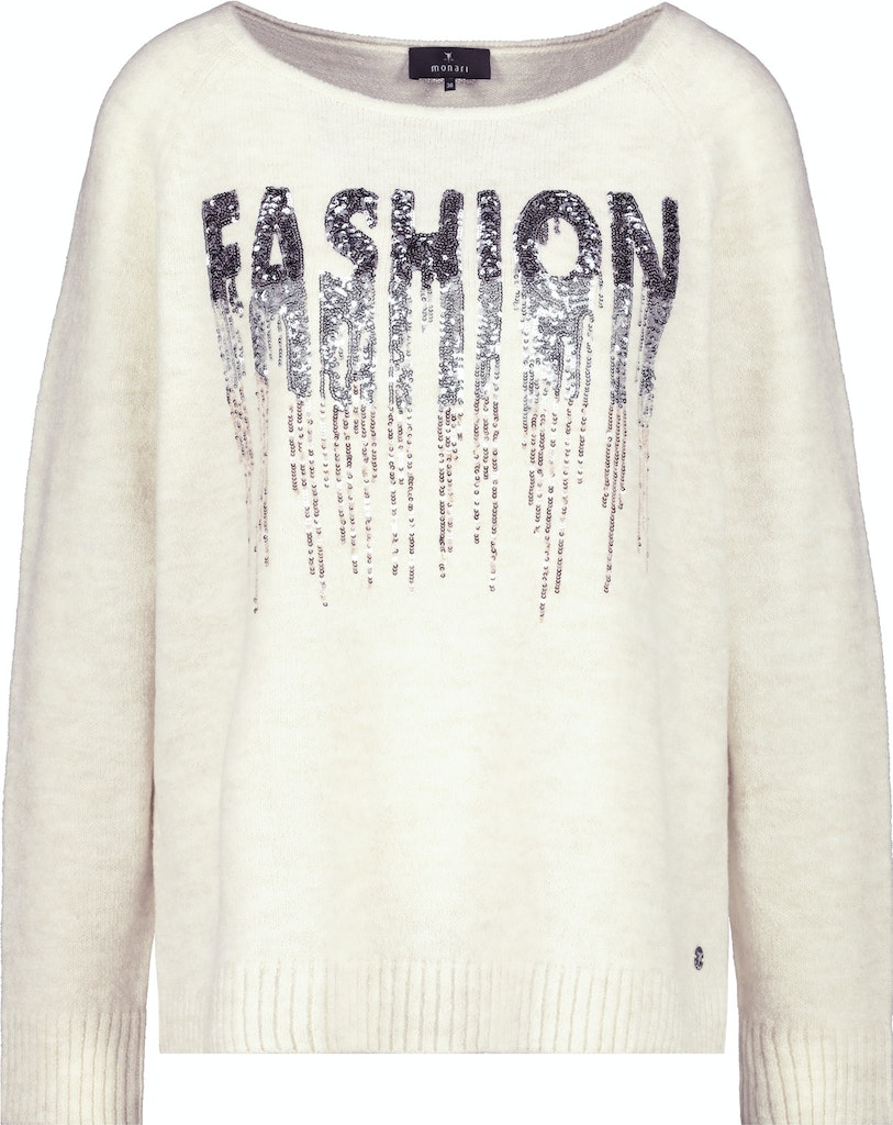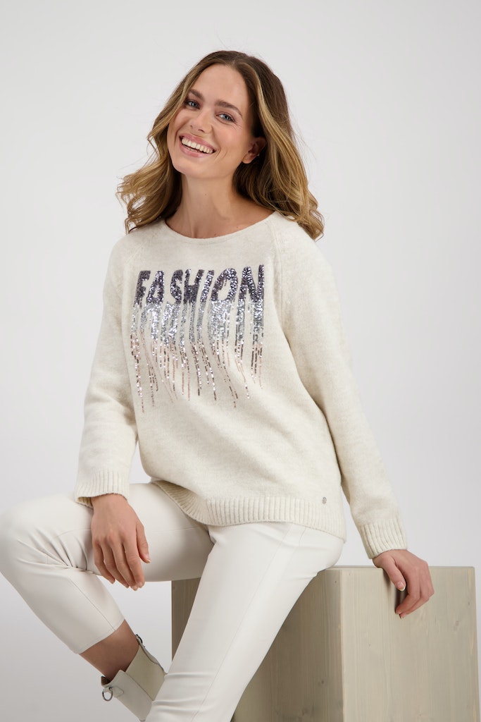 Der weiche Pullover erhält durch die Qualität aus geschmeidiger Polyacryl Mischung einen tollen Tragekomfort. Auf der Vorderseite platziert sich modische Pailletten Schrift, die den Pullover glamourös aufwertet.