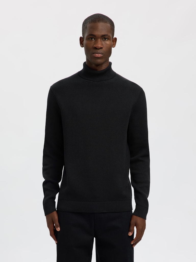 SLHDANE LS KNIT STRUCTURE ROLL NECK NOOS black