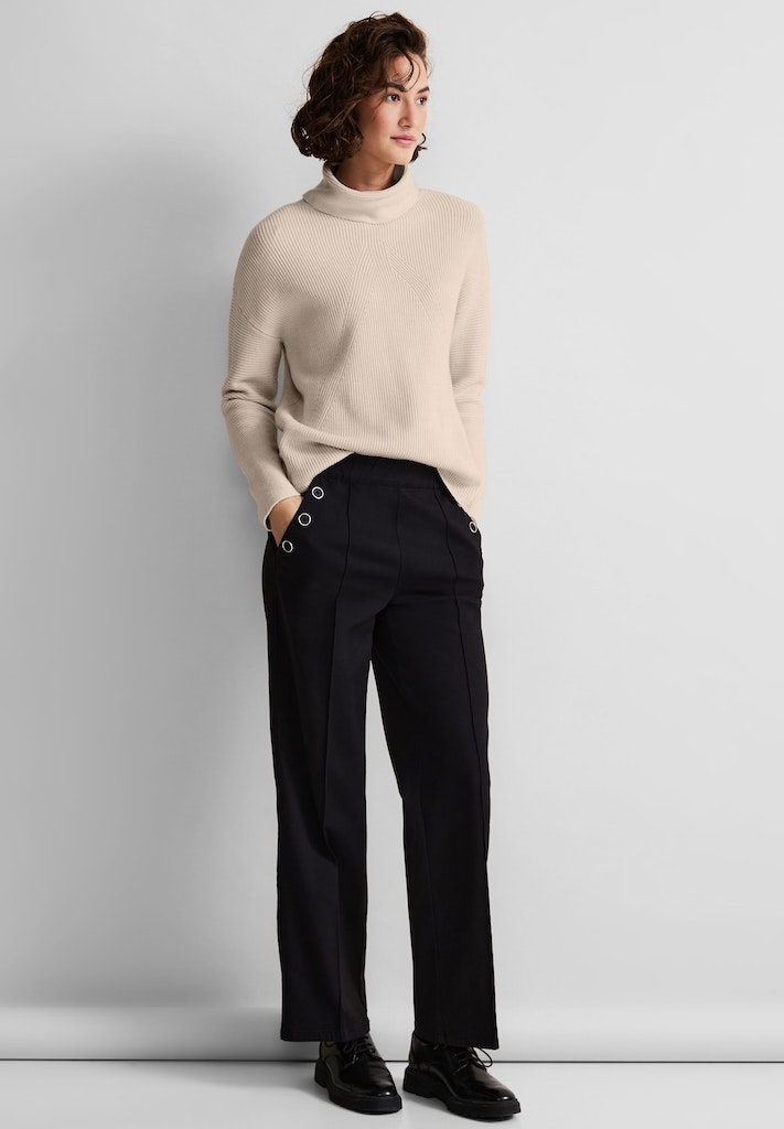Street One steht für modebewusste Alltagsbekleidung, die sich durch hochwertige Materialien, innovative Schnitte und Vielseitigkeit auszeichnet. Die Kollektionen sind stets auf aktuelle Fashion-Trends abgestimmt, sodass Du mit Street One jederzeit stilbewusst unterwegs bist. Egal, ob Office-Look, Freizeit-Outfit oder Basic-Styles – Street One bietet Dir zahlreiche Möglichkeiten, Deinen individuellen Stil auszuleben. Die Designs spiegeln ein modernes, dynamisches Lebensgefühl wider und überzeugen durch Tragekomfort sowie langlebige Verarbeitung.