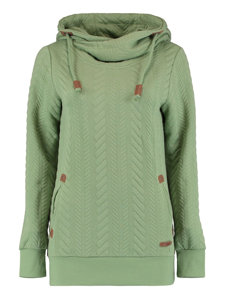 • Edle Details: Kunstlederbesetzter Tunnelzug, Kapuze und seitliche Taschen für einen modischen Look