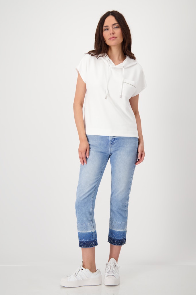 Besonders beliebt sind die ausgefallenen Oberteile mit Materialmix und Applikationen. Wenn Du nach einem Look mit Balance aus Alltagstauglichkeit und besonderem Stil suchst, dann ist Monari eine kluge Wahl.