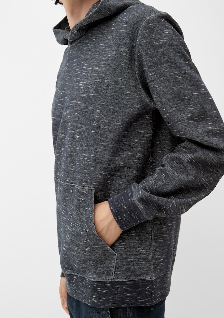 Stelle dich dem kühlen Wetter mit unserem männlichen Sweatshirt. Seine Kängurutasche und die lässige Kapuze sind perfekt für entspannte Tage. Das weiche Material und die Regular Fit Passform bieten Komfort und Style in einem. Ob du dich für ein lässiges Outfit entscheidest oder deinen Look aufpeppen möchtest, dieses Sweatshirt mit Rippbündchen an den Ärmeln und Rippblende am Saum passt immer. Ein must-have für entspannte Anlässe. Ergänze deinen Kleiderschrank und setze ein Fashion-Statement mit diesem langärmligen Casual Piece.\n\nBereit, deinen Style zu aktualisieren? Schnappe dir jetzt dieses vielseitige Sweatshirt und verleihe deinem Outfit einen coolen Touch!