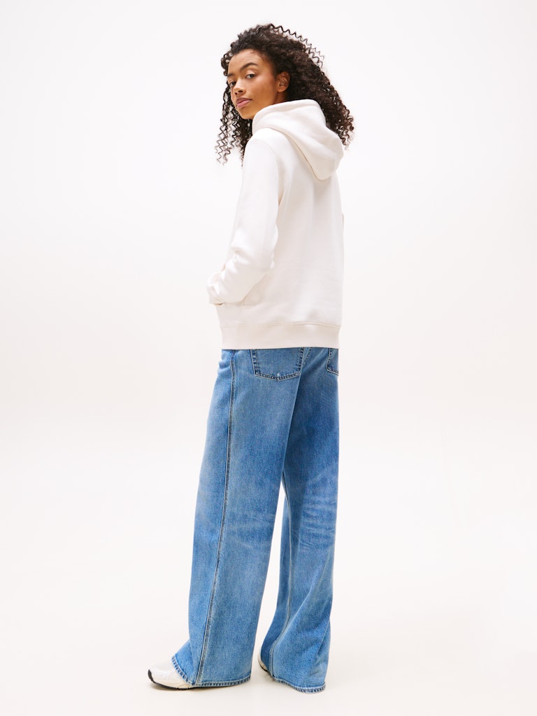 Der große Tommy Jeans-Schriftzug bringt visuelle Klarheit – ob im Park, im Café oder auf dem Campus.