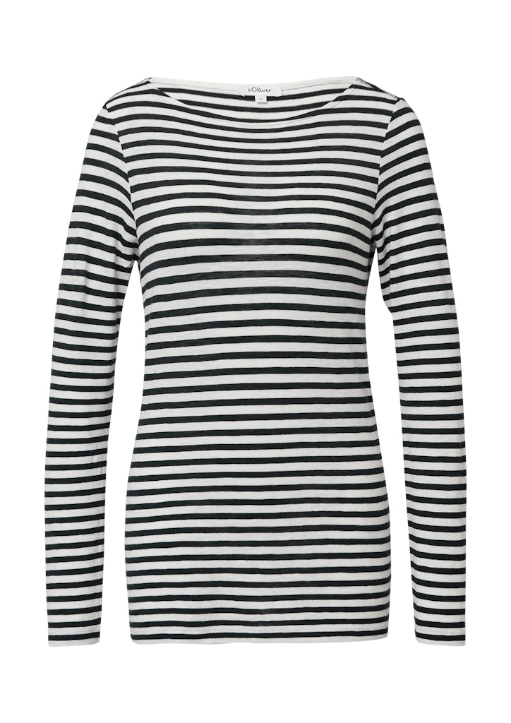 Dieses gestreifte Langarmshirt aus weichem Flammgarn-Jersey verwöhnt dich mit lässigem U-Boot-Ausschnitt und schmeichelhafter Slim-Fit-Passform - perfekt für entspannte Casual-Looks.