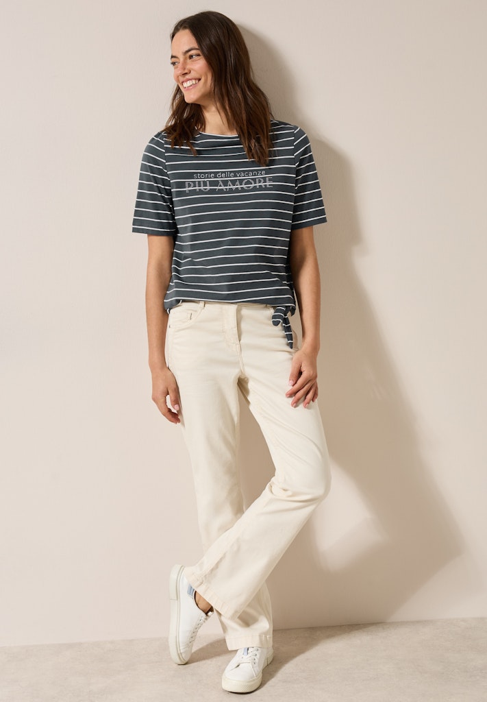 Stilvolles Streifenshirt mit Wording für Damen