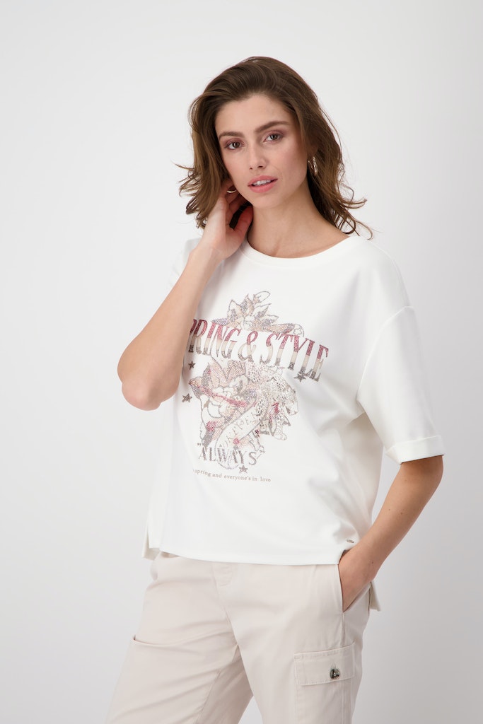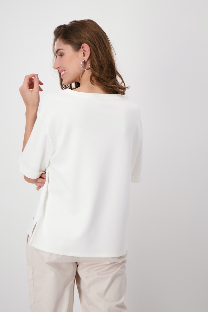 Besonders beliebt sind die ausgefallenen Oberteile mit Materialmix und Applikationen. Wenn Du nach einem Look mit Balance aus Alltagstauglichkeit und besonderem Stil suchst, dann ist Monari eine kluge Wahl.
