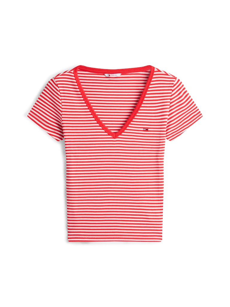 Ribbed Low V-Neck Slim T-Shirt red alert - stripe