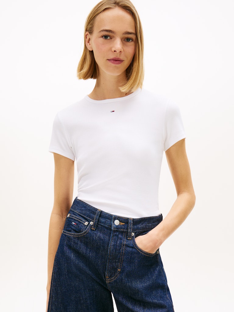 Ribbed Slim Crew Neck T-shirt white