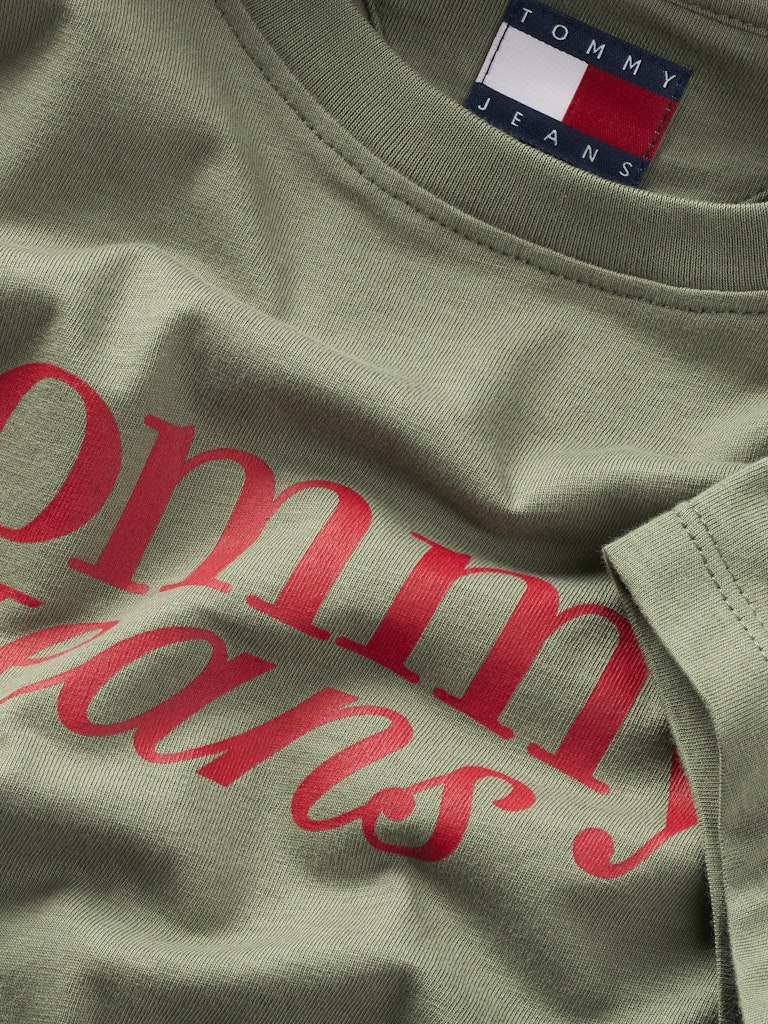 Der große Tommy Jeans-Schriftzug bringt visuelle Klarheit – ob im Park, im Café oder auf dem Campus.