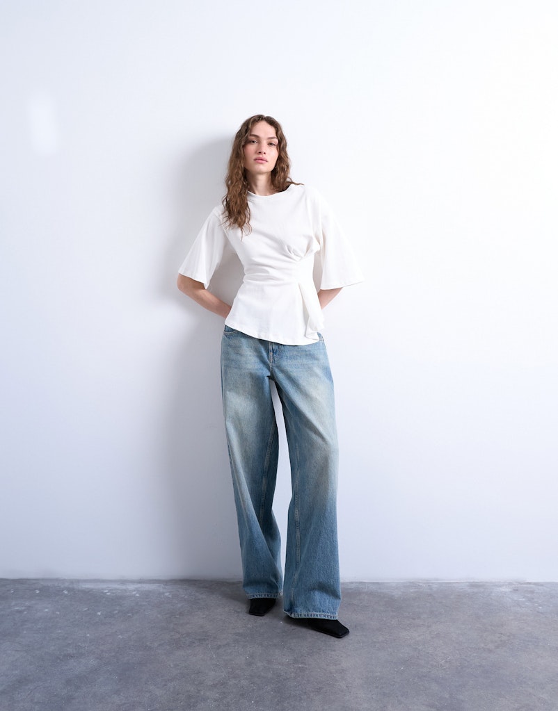 Angenommen, du suchst einen modernen City-Look für Büro und After-Work. Im Tara-M Onlineshop wählst du im Bereich Topshop zunächst eine markante Hose mit modischer Silhouette. Ergänzend entdeckst du ein schlichtes, hochwertiges Oberteil von Topshop, das den Schnitt der Hose ruhiger wirken lässt.