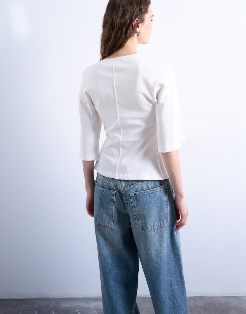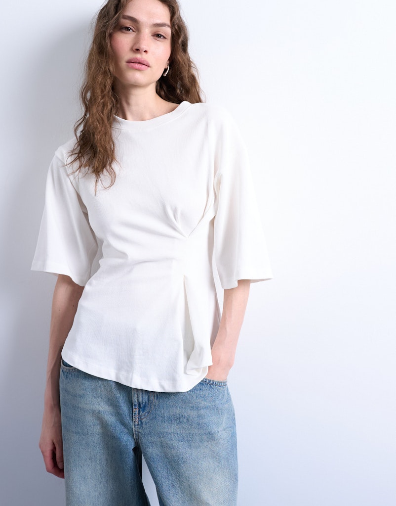 Viele Topshop-Pieces bestehen aus soften Mischqualitäten, die Elastizität und Formstabilität verbinden. Besonders im Denim-Bereich sorgen elastische Anteile für Komfort bei gleichzeitig klarer Silhouette. Auch bei Oberteilen kommen angenehm zu tragende Stoffe zum Einsatz, die sich für lange Tage im Office oder in der City eignen.
