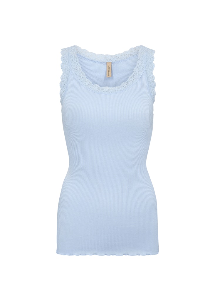 SC-Sarona 1 ist dein Must-Have-Oberteil aus einer exklusiven Seiden-Baumwoll-Mischung. Es ist ein klassisches Rundhals-Top mit Spitzendetails und Rippenoptik. Es ist ein feminines Top, das sich perfekt als bequemes Basic unter all deinen coolen Shirts und Kleidern eignet.