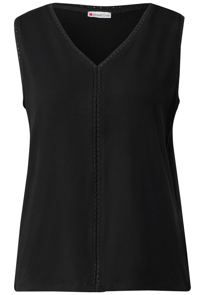 Dieses leichte Top von Street One für Damen begeistert mit feinen Häkeldetails an Ausschnitt und Trägern. Der V-Ausschnitt sorgt für eine elegante Note, während der Viskosemix mit Stretchanteil ein angenehmes Tragegefühl bietet. Leichtes Top V-Ausschnitt Ärmellos Häkeldetails an Ausschnitt und Trägern Viskosemix mit Stretchanteil Material: 95% Viskose, 5% Elasthan