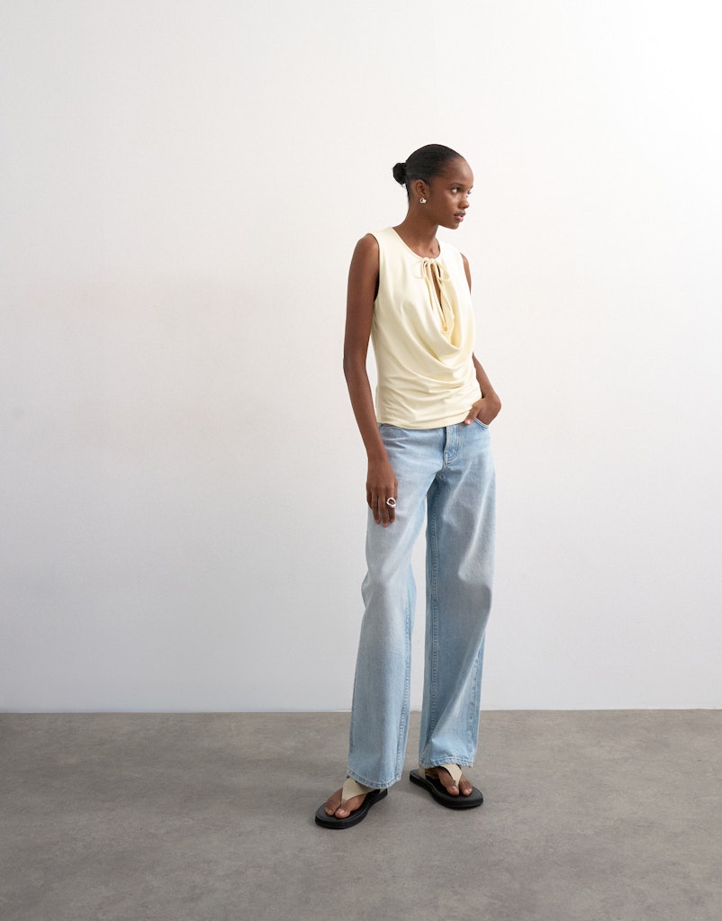 Viele Topshop-Pieces bestehen aus soften Mischqualitäten, die Elastizität und Formstabilität verbinden. Besonders im Denim-Bereich sorgen elastische Anteile für Komfort bei gleichzeitig klarer Silhouette. Auch bei Oberteilen kommen angenehm zu tragende Stoffe zum Einsatz, die sich für lange Tage im Office oder in der City eignen.