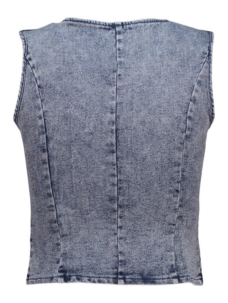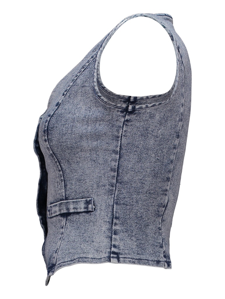 Denim-Weste mit V-Ausschnitt und Knopfleiste, sowie Paspeltaschen.